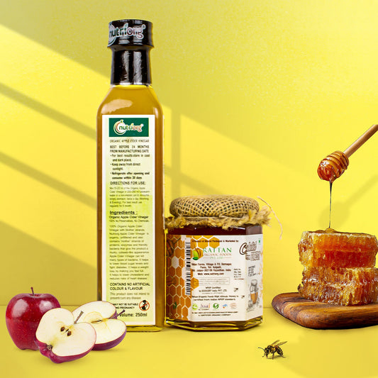 Nutriorg Organic Apple Cider Enriched with Mother Vinegar 250ml with High Altitude Honey 250g