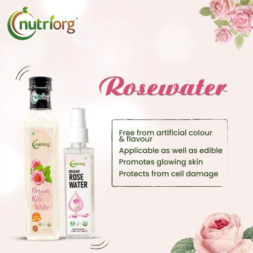 Nutriorg Certified Organic Rose Water 250ml and Get 100ml Spray Bottle Free
